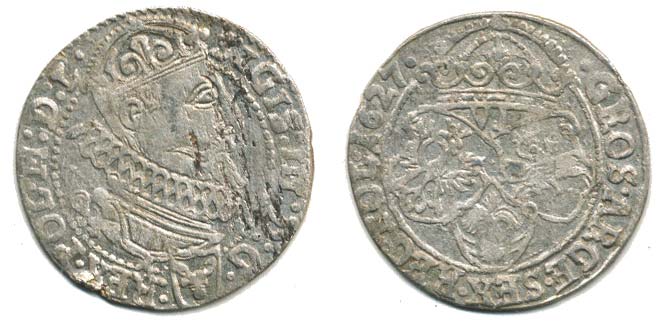 VI groš 1627 Krakov-Ligenza Zag. 293_dr. vada stř., tém.
