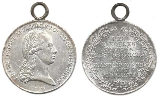 Záslužná medaile dolnorakouské mobilizační výzvy z roku 1797 Ag 39 mm, určená pro poddůstojníky (WIRT) orig. ouško VM 1/16c "RR"_v rv. dr.rys., nep.hr.
