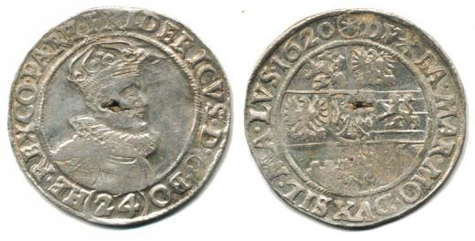 24 kr. 1620, K.Hora-Hölzl - sedmiznak. MKČ 667 _trhlina při ražbě ve střížku, drobně mělčí ražba