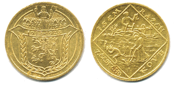 Dvoudukátová medaile 1928 - 10.výr.republiky / Jsem ražen.... (Španiel) Nov. Ib_zc. nep. hr.
