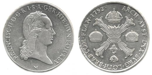 Tolar křížový 1792 M_rys. před nosem, dr. hr.