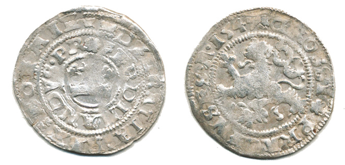 Pražský groš 1547, K.Hora var.: FERDINANDVS .PR* / dlouhý jazyk lva