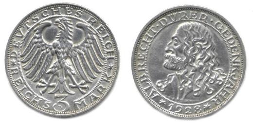 3 RM 1928 D - Albrecht Dürer KM 58 "RR" 14,94 g