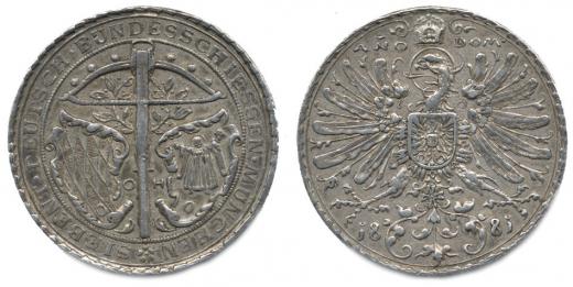 Mnichov - VII. německé spolkové střelby 1881, kuše mezi dvěma zna ky a opis / říšský orel a datace sign.: OH Ag 38 mm 2 6,95 g Taul 695