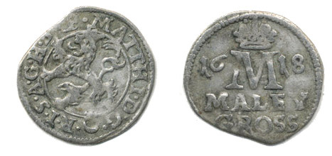 Malý groš 1618, Praha-Hübmer HN 2a "R"_kraj. stř., jiak