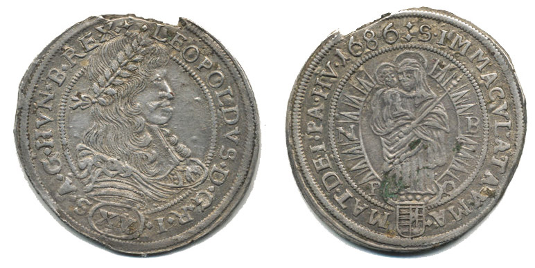 XV kr. 1686 NB-PO, Nagybánya Hol. 86.1,2 "R"_kraj stř.