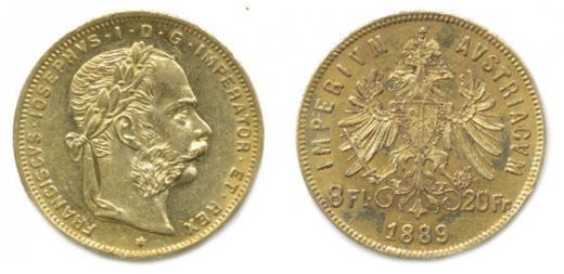 8 Florin = 20 Franken 1889 b.zn.