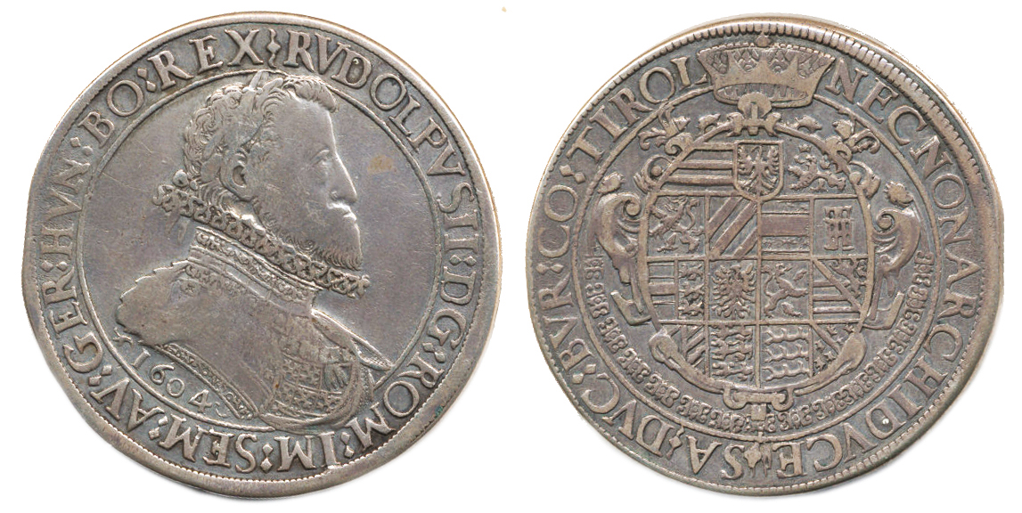 2 Tolar 1604, Tyroly, Hall Moser-Tursky 362/364; Davenport 3 004 "RR" 56,00 g +starý podlož. štítek fy Ludwig Herinek W ien
