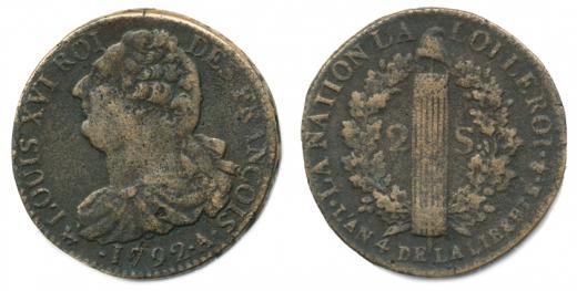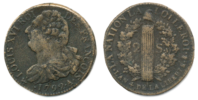 2 Sols 1792 A Cr. 89,1; Gad 25; KM 603.1