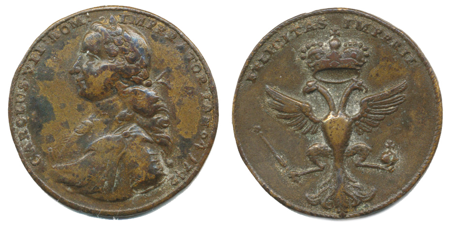 Medaile na volbu za římského císaře 24.1. 1742, Poprsí císaře zle va, opis / Dvojhlavý císařský orel, opis nesign. litý bron z 37 mm Nov.XII/B-20a; JF.730 RR!