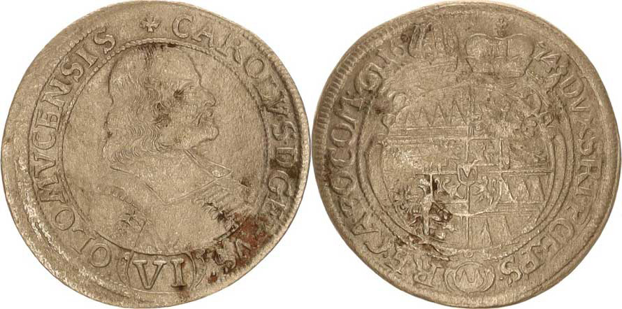 Olomouc, Karel II. Liechtenstein (1664-1695), VI kr. 1674 zn. špice SV 342 B5/C1 var.: bez tečky na