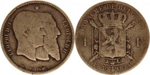 Belgie, Leopold II.(1865-1909), 1 Franc 1880 - 50. výr. nezávislosti KM 38 "R"