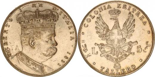 Itálie, Umberto I. (1878-1900), 5 Lire 1891 "REPLIKA" bílý kov 26,45 g