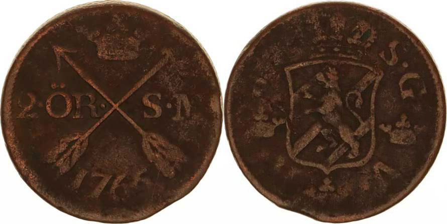 Švédsko, Adolf Frederick (1751-1771), 2 Öre 1766 SM KM 461