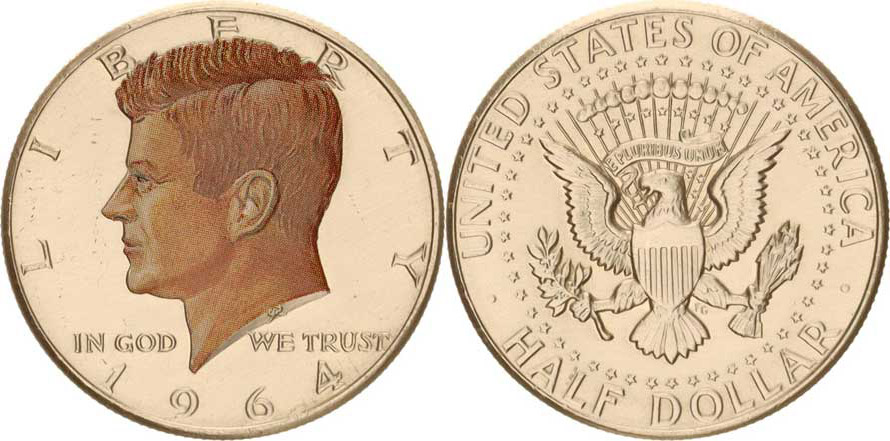 1/2 Dollar 1964 - Kennedy (multikolor. portrét !)