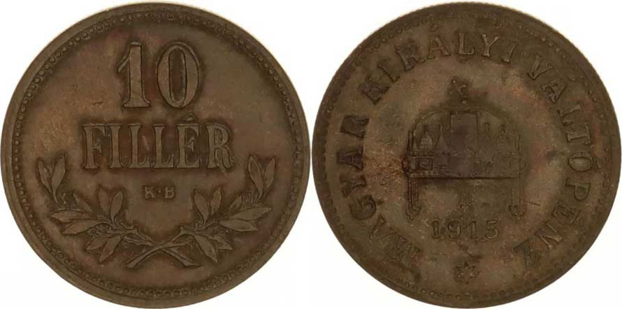10 Fillér 1915 KB - bronzový odražek "RR" 2,753 g, tém.