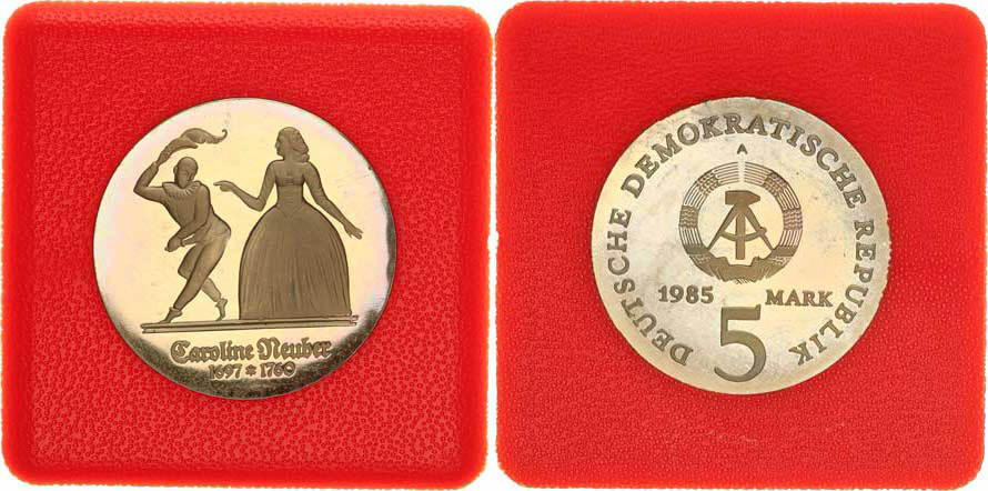Německo - DDR (1949-1990), 5 M 1985 A - Caroline Neuber KM 104 "R" +certifik