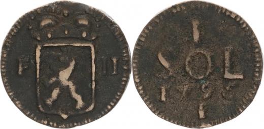 1 Sol 1795 - zn.patrona, pro obležené město Lucemburk "R"