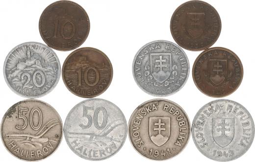10 hal. 1939, 1942; +20 hal. 1943; +50 hal. 1941, 1943 5 ks