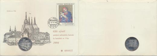 200 Kč 1994 - pražské arcibiskupství +"Mincovní dopis" obálkase známkou a grafikou (Herčík) číslo *000037