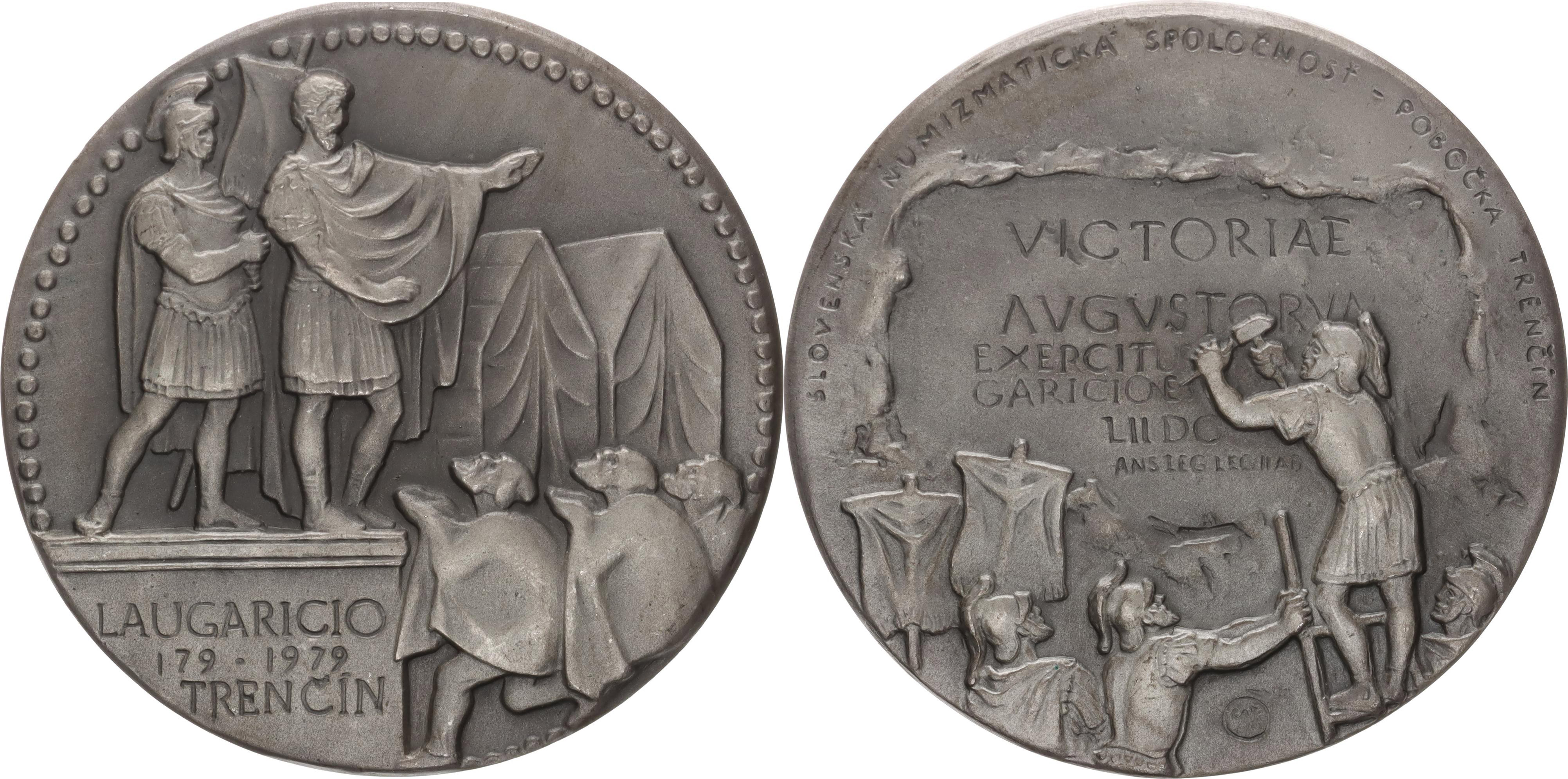 Laugaricio 179 - 1979, R: Římský voják tesající nápis do skályvyd.: SNS pob.Trenčín 1980 sign.: Cv 80 (Cvengrošová)postř. bronz 68 mm