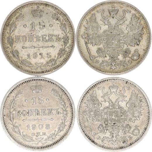 15 Kop. 1908 EB, 1915 BC 2 ks
