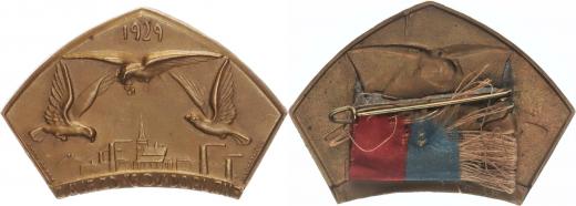 Zájezd Č.O.S. do Plzně 1929 sign.: KOUKOLÍČEKrazil: PICHL bronz 50x32 mm spín. špendlík