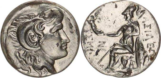 Thracia - Lysimachos (323-281 př.Kr.), Novodobá pamětní miniatura s motivem tetradrachmy, A: Hlava
