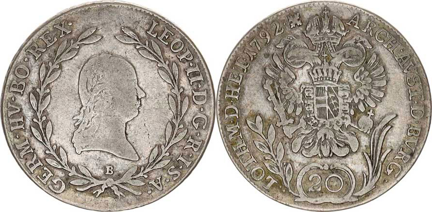 Leopold II. (1790-1792), 20 kr. 1792 B