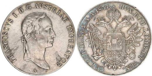 František I. (1792-1835), Tolar 1831 A - přilehlé stuhy "R" 27,845 g +starý podlo
