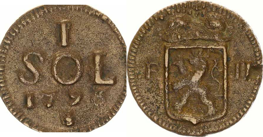 František I. (1792-1835), 1 Sol 1795 - zn. bomba, pro obležené město Lucemburk "R"