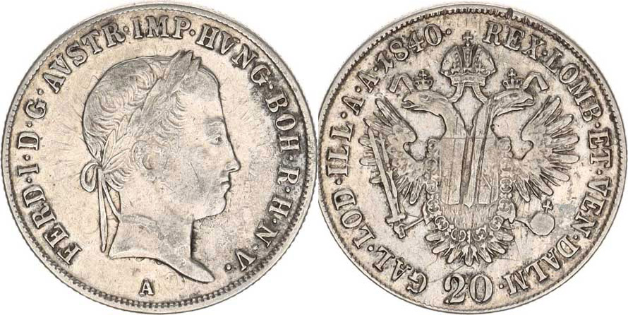 Ferdinand V. (1835-1848), 20 kr. 1840 A, just.
