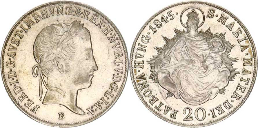 Ferdinand V. (1835-1848), 20 kr. 1845 B, lakován
