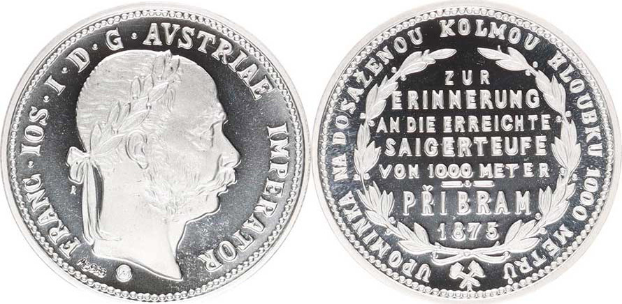 František Josef I.(1848-1918), Zlatník 1875 b.zn. - Příbramský - novoražba sign.: H Ag 999