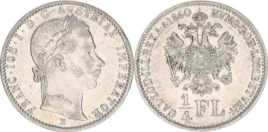 František Josef I.(1848-1918), 1/4 Zlatník 1860 B