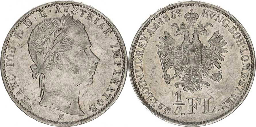 František Josef I.(1848-1918), 1/4 Zlatník 1862 E "R"