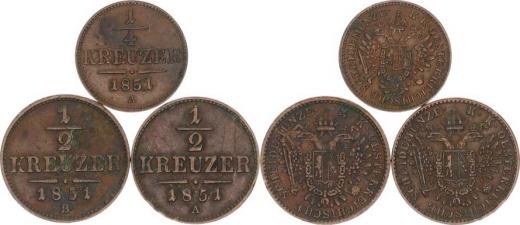 1/4 kr. 1851 A; +1/2 kr. 1851 A, 1851 B 3 ks