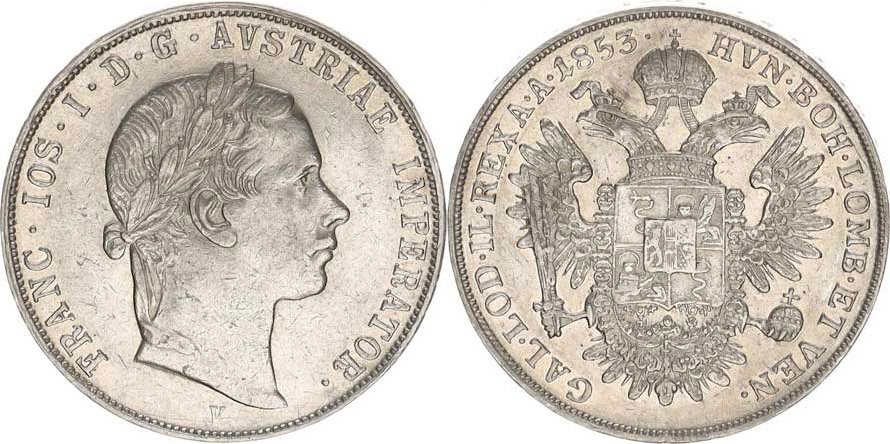 František Josef I.(1848-1918), 1/2 Scudo 1853 V "RR" 12,993 g +podložní štítek fy. M