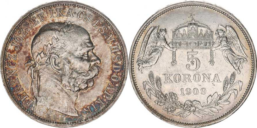 František Josef I.(1848-1918), 5 Koruna 1909 KB