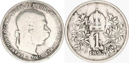 František Josef I.(1848-1918), 1 Koruna 1893 b.zn.