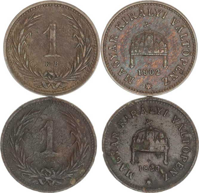 František Josef I.(1848-1918), 1 Fillér 1893, 1902 oba KB 2 ks