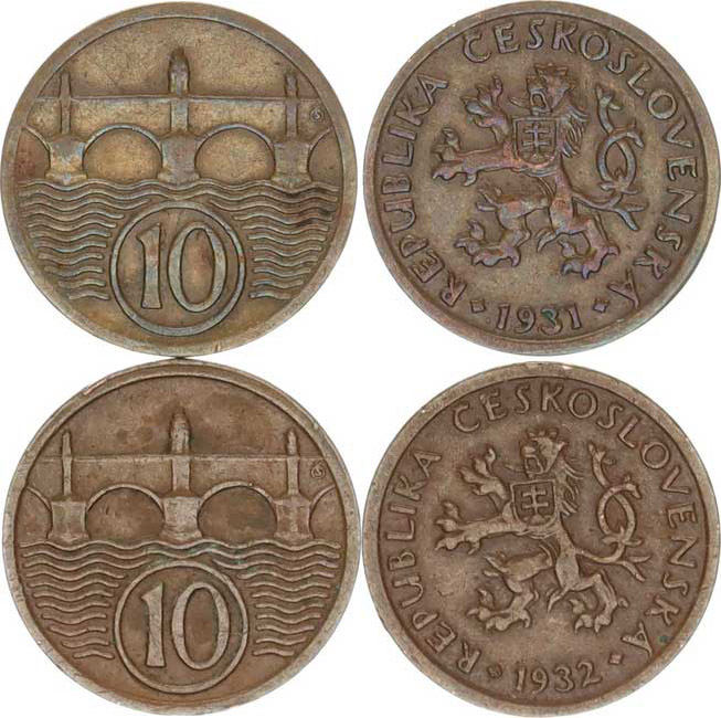 Údobí let 1918-1938, 10 hal. 1931, 1932 2 ks