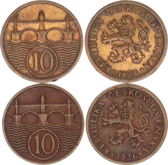 Údobí let 1918-1938, 10 hal. 1932, 1936 2 ks