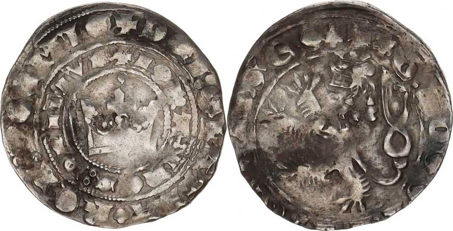 Pražský groš Smolík 8, čtyřlístek pod korunou 3,36g , část. nedor.