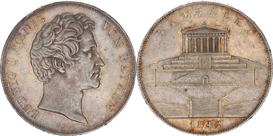 Bavorsko, Ludwig I. (1825-1848), 2 Tolar 1842 - Walhalla KM 430 37,186 g