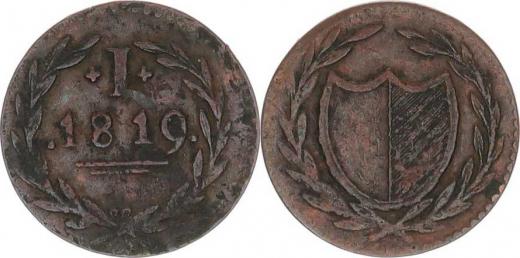 1 Pfennig "Judenpfennig" 1819 Cu token 18 mm KM Tn5; JuF 1997a