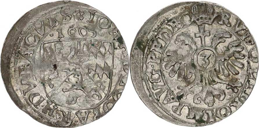 Pfalz - Zweibrücken, Johann II. (1604-1635), 3 kr. 1605, s tit. Rudolfa II. Sa 2025/998 1,865 g