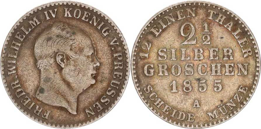 Prusko, Friedrich Wilhelm IV.(1840-1861), 2 1/2 Silber groschen 1855 A KM 463