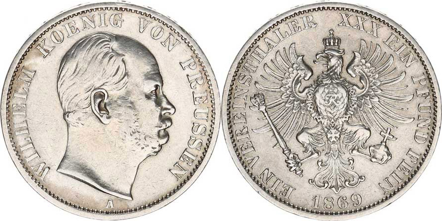 Prusko, Wilhelm I. (1861-1888), Tolar spolkový 1869 A KM 494 18,464 g, tém.