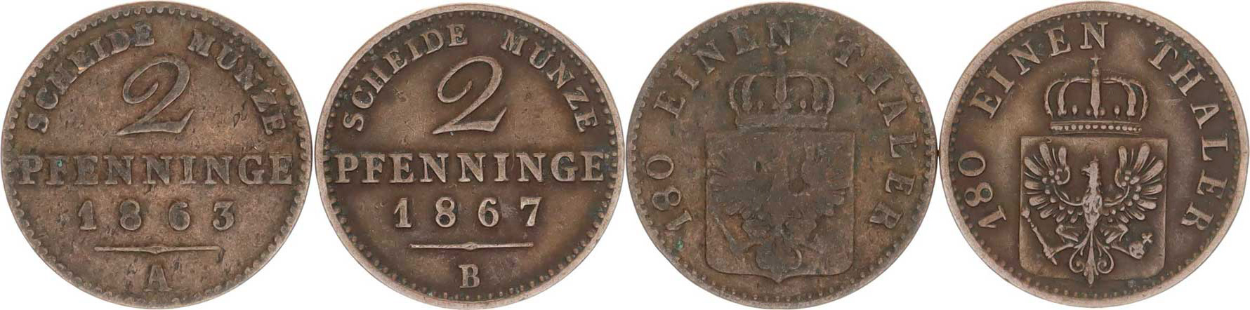 Prusko, Wilhelm I. (1861-1888), 3 Pfennig 1863 A, 1867 B 2 ks